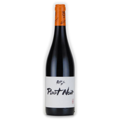 ラベルの「天地人」「Pinot Noir」「Chardonnay」の文字は、鈴木氏愛用の熊野筆にて書き下ろし。